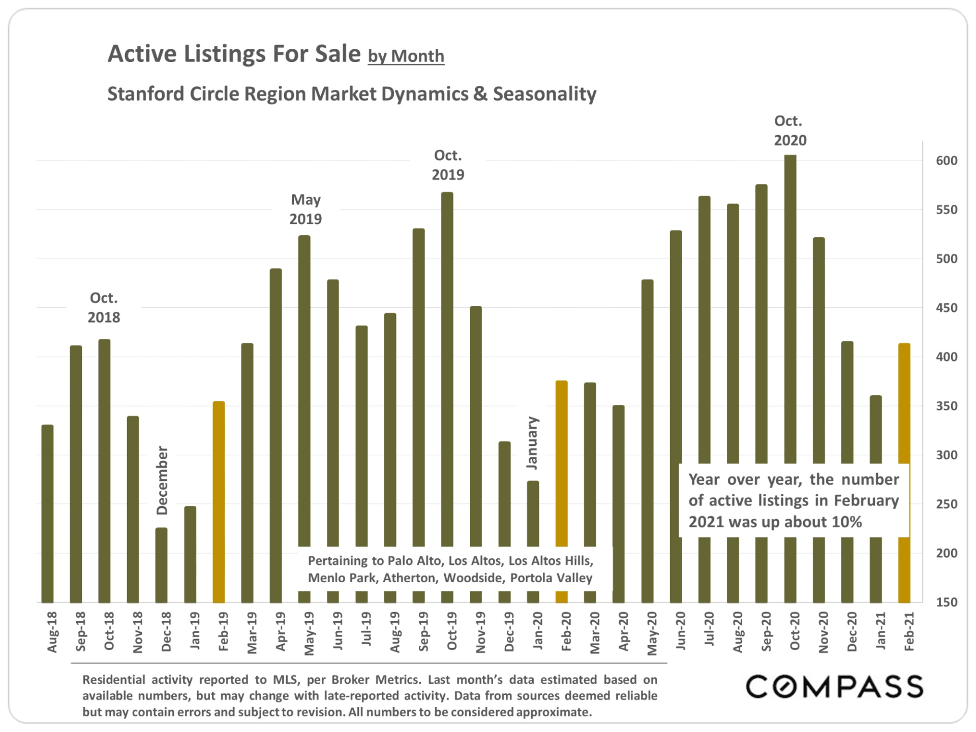 Although the number of active listings in February 2021 is up 10% from 2020, we are still experiencing a seller's market with high demand and lower inventory.