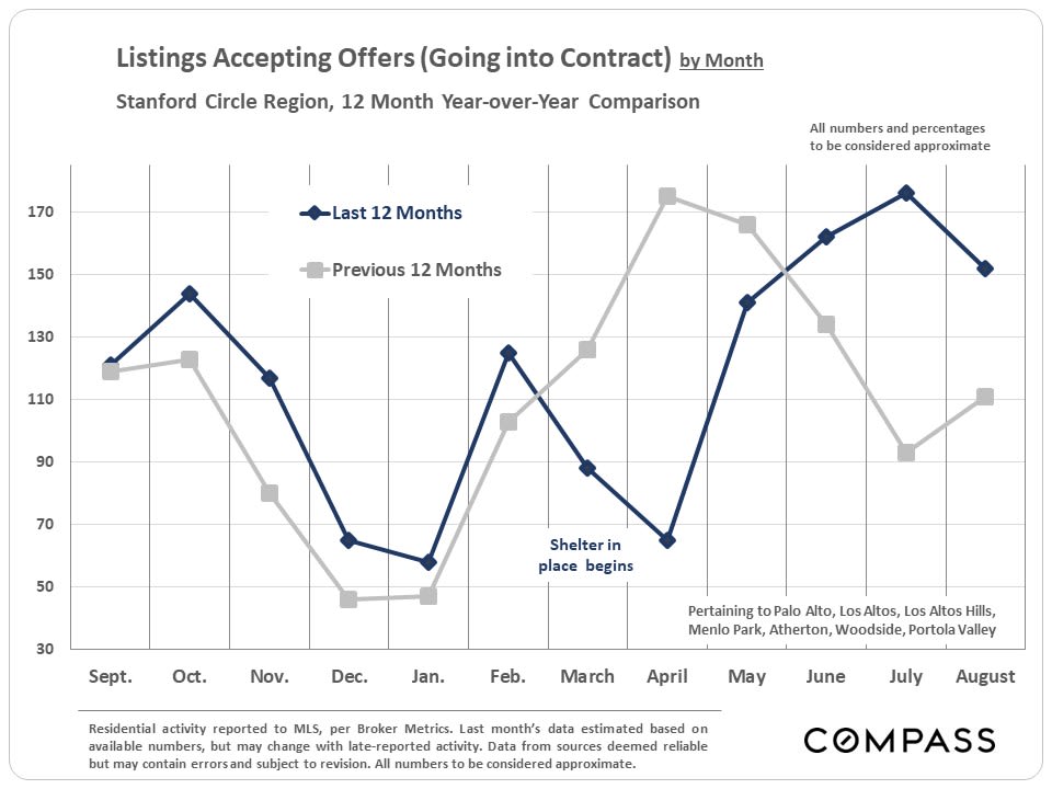 In the Menlo Atherton area, the number of listings going into contract in the second week of August (before the fires) and in the fourth week (deep in crisis) were virtually the same. And activity has actually jumped up in the first week of September.