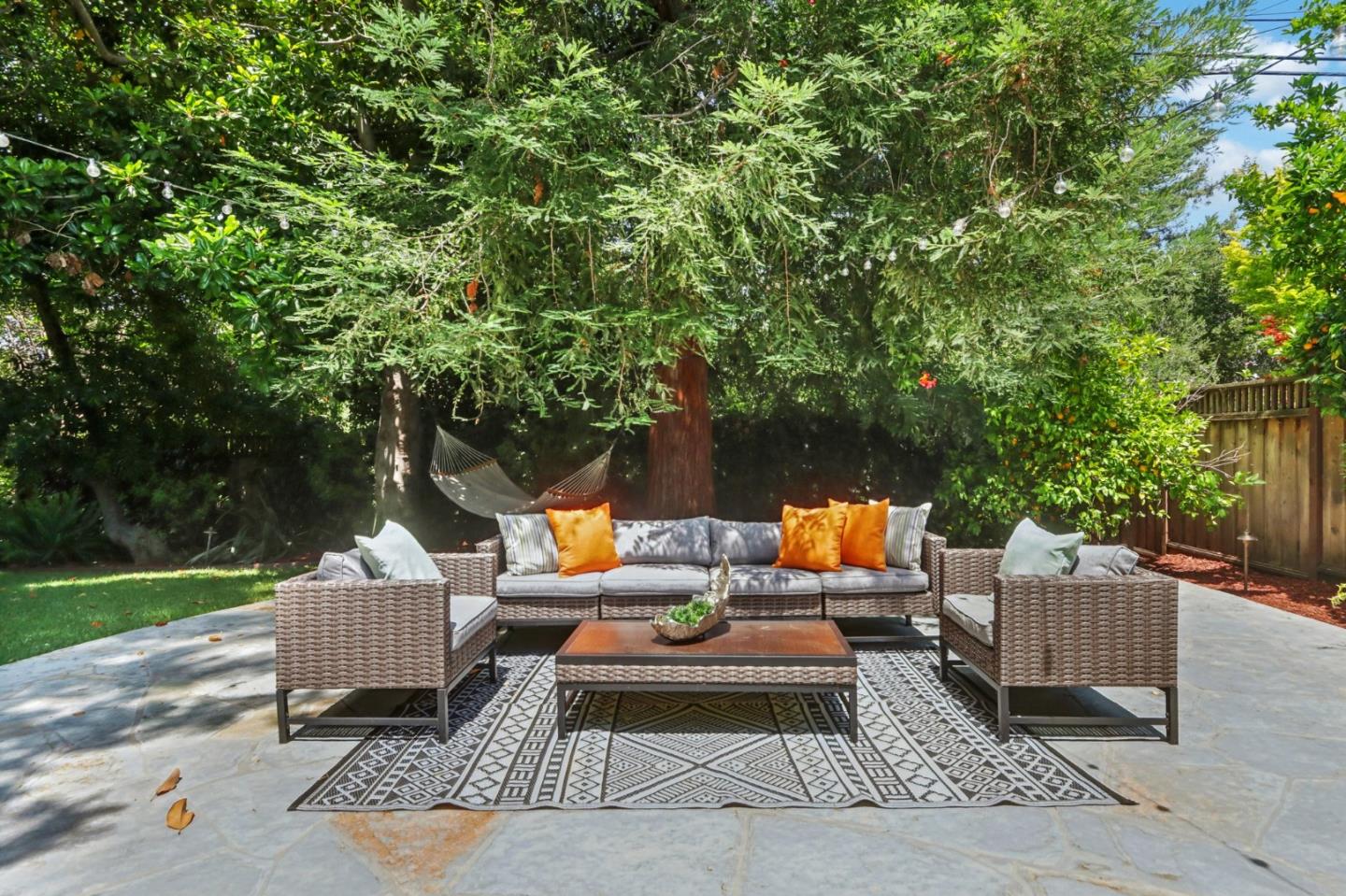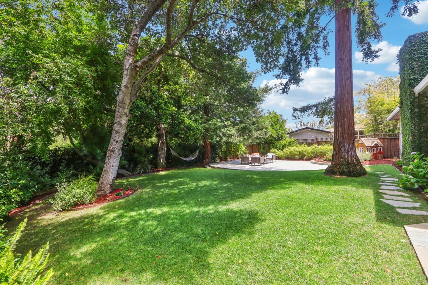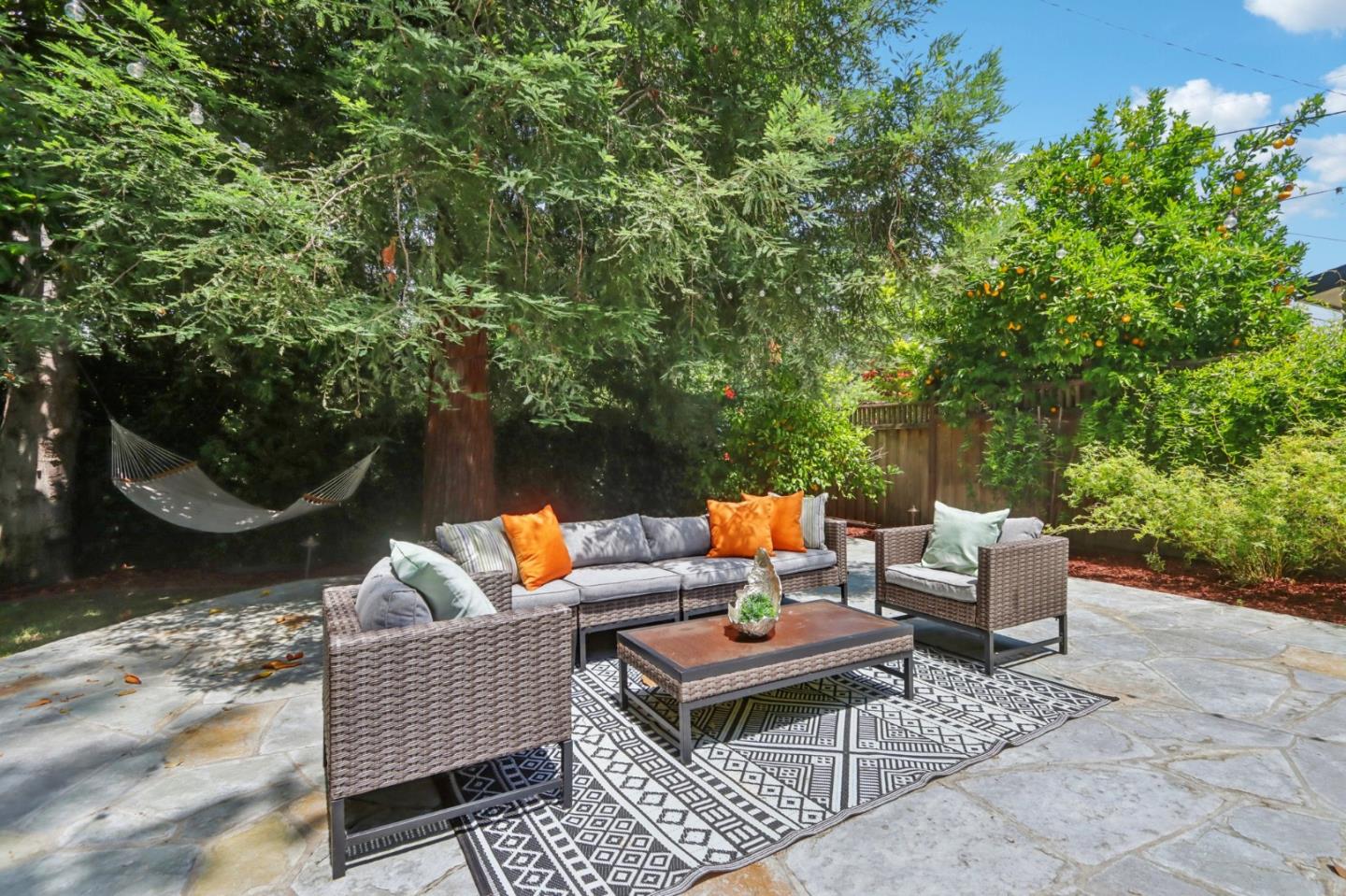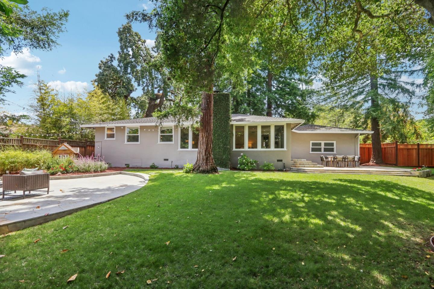 Nestled on an expansive and private property with a serene babbling brook, this charming and updated light-filled home offers a rare blend of nature and modern elegance. The park-like yard with towering trees backs onto the Hetch Hetchy open space, providing a lovely sense of privacy. The open floor plan is ideal for family living and entertaining with sliding doors opening to a tranquil patio setting with multiple spaces for entertaining family and friends. Inside, custom touches abound, including a cook's kitchen with granite counters, white cabinetry and stainless steel appliances. The welcoming living/dining room features a wall of windows flanking the fireplace, offering breathtaking views of the stunning backyard. Three generous bedrooms, including a delightful master suite, ensure comfort and refinement. Additional features include an attached two-car garage with laundry and storage. Convenient access to 280 and 101 for quick travel to San Francisco and Silicon Valley. Located near some of Redwood City's most charming parks and playgrounds, and just blocks from Maddux and Stulsaft Parks, this move-in ready home is not to be missed.