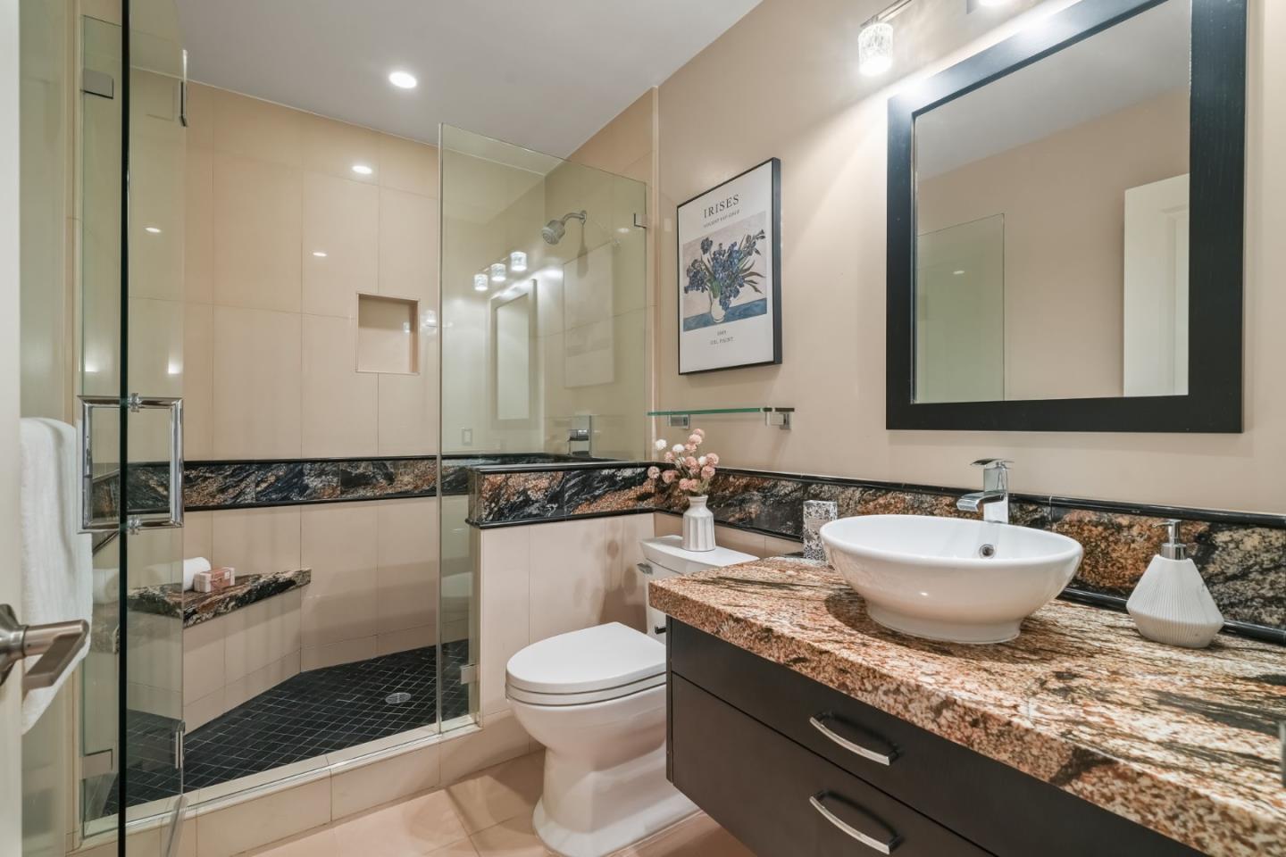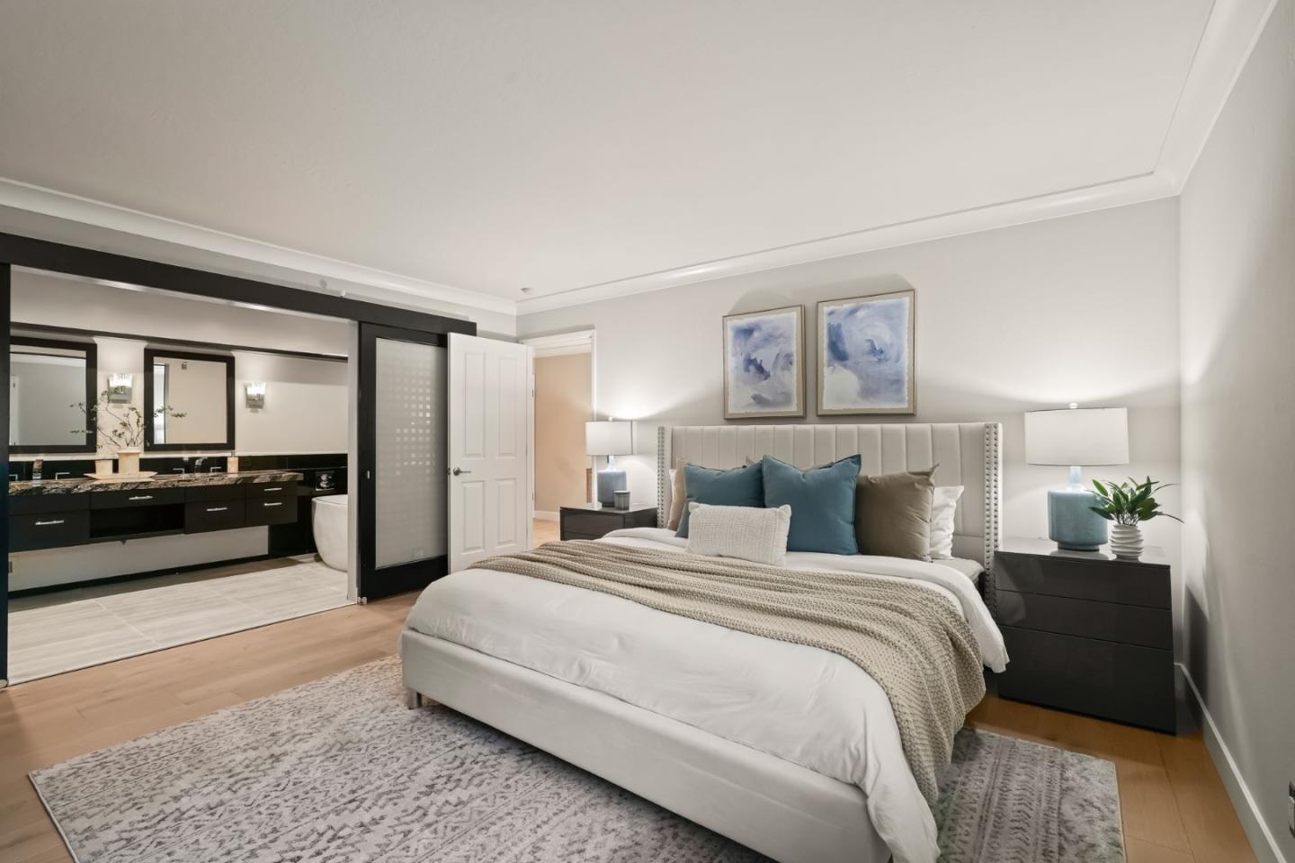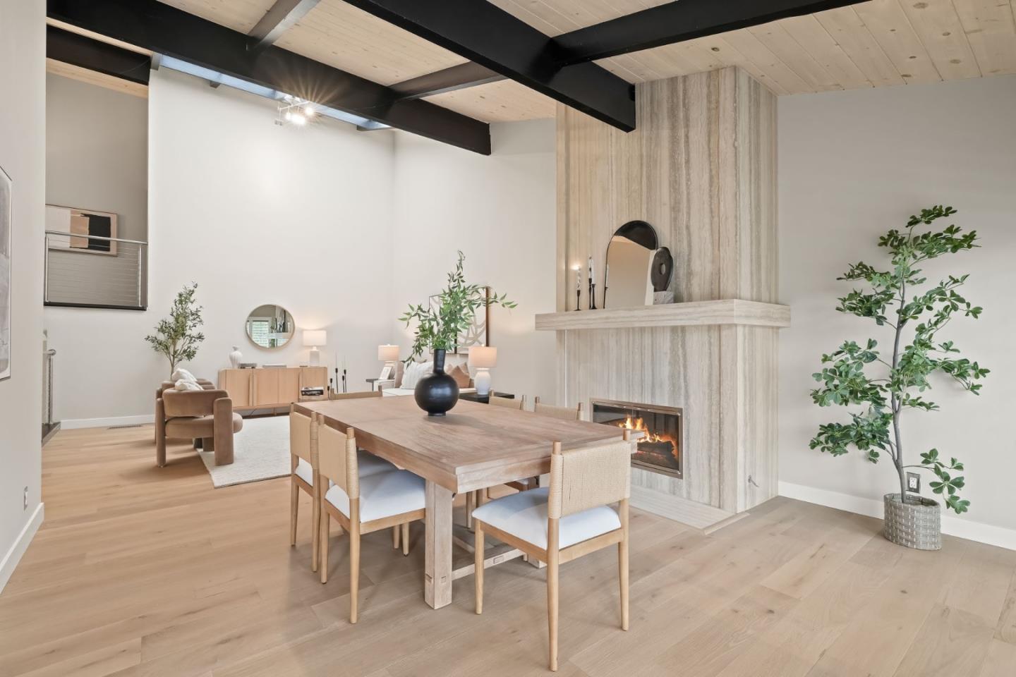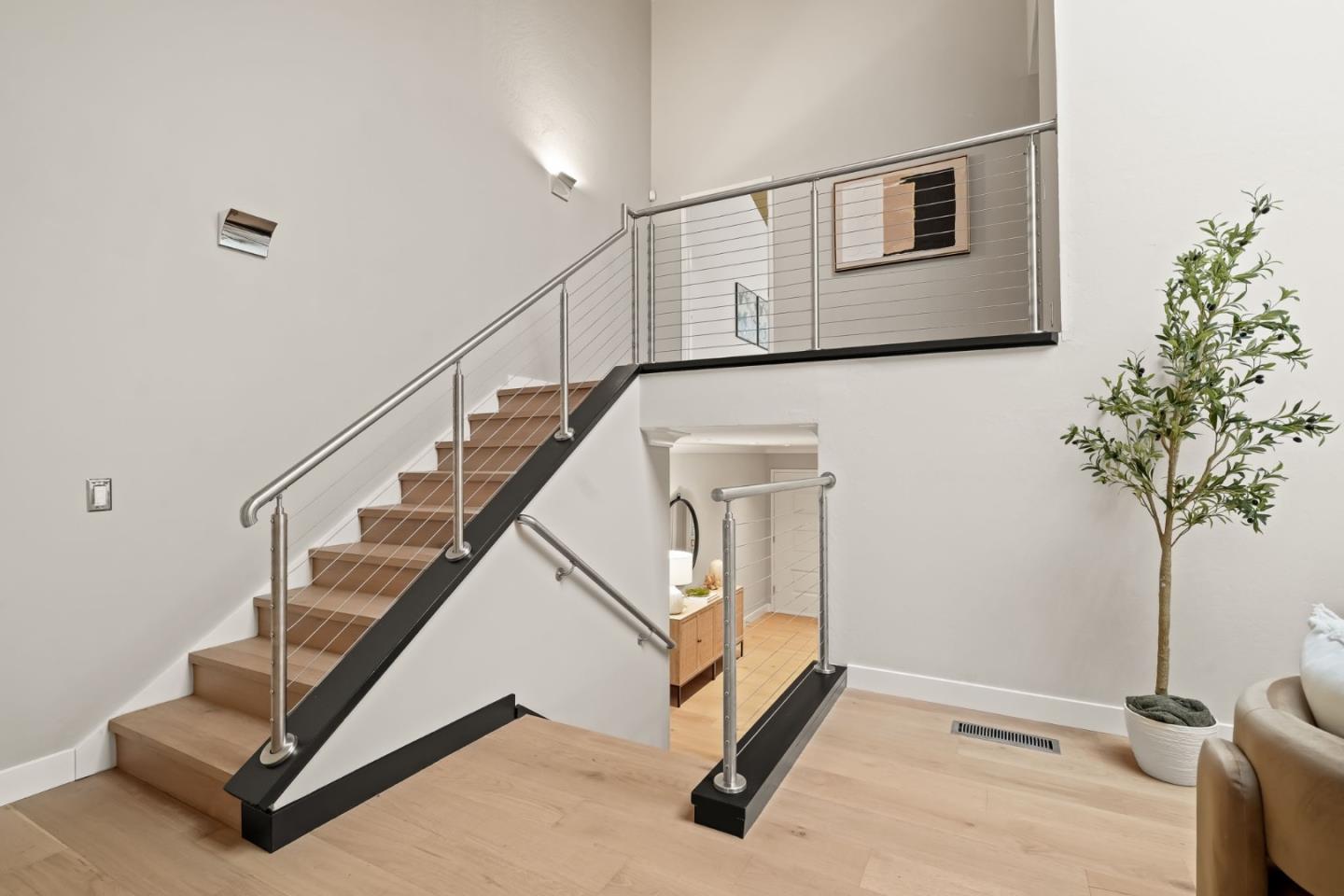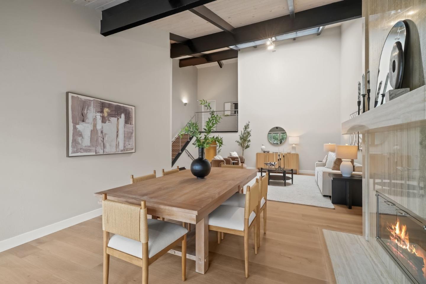 Beautifully remodeled townhome showcasing contemporary style, soaring high-pitched ceilings, skylights, and expansive windows that flood the interior with natural light. Fresh interior paint and newly installed engineered hardwood floors create a crisp, modern aesthetic, complemented by smart-home upgrades including an EV charger, Lutron lighting system, MyQ garage door opener, and Ring doorbell. Enjoy serene views of Sharon Heights Golf Course and seamless indoor-outdoor living as the open living and dining areas, anchored by a fireplace, extend to a gracious private patio ideal for entertaining.The updated chefs kitchen features granite countertops, a dining bar, and top-quality stainless steel appliances, offering both style and functionality. Three generously sized bedrooms include a desirable ground-floor primary suite with remodeled en-suite bath and built-in cabinetry. A beautifully remodeled hall bath completes the two upstairs bedrooms. Additional highlights include central air conditioning, an oversized laundry/workroom, and an attached two-car garage. Ideally situated in a premier mid-Peninsula community with lush landscaped grounds and a community pool, this exceptional home offers convenient access to Stanford University, Sand Hill Road, and Highway 280.