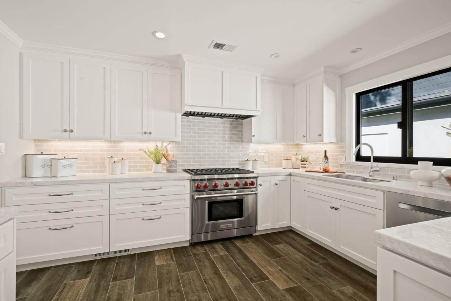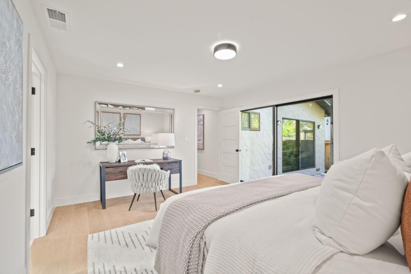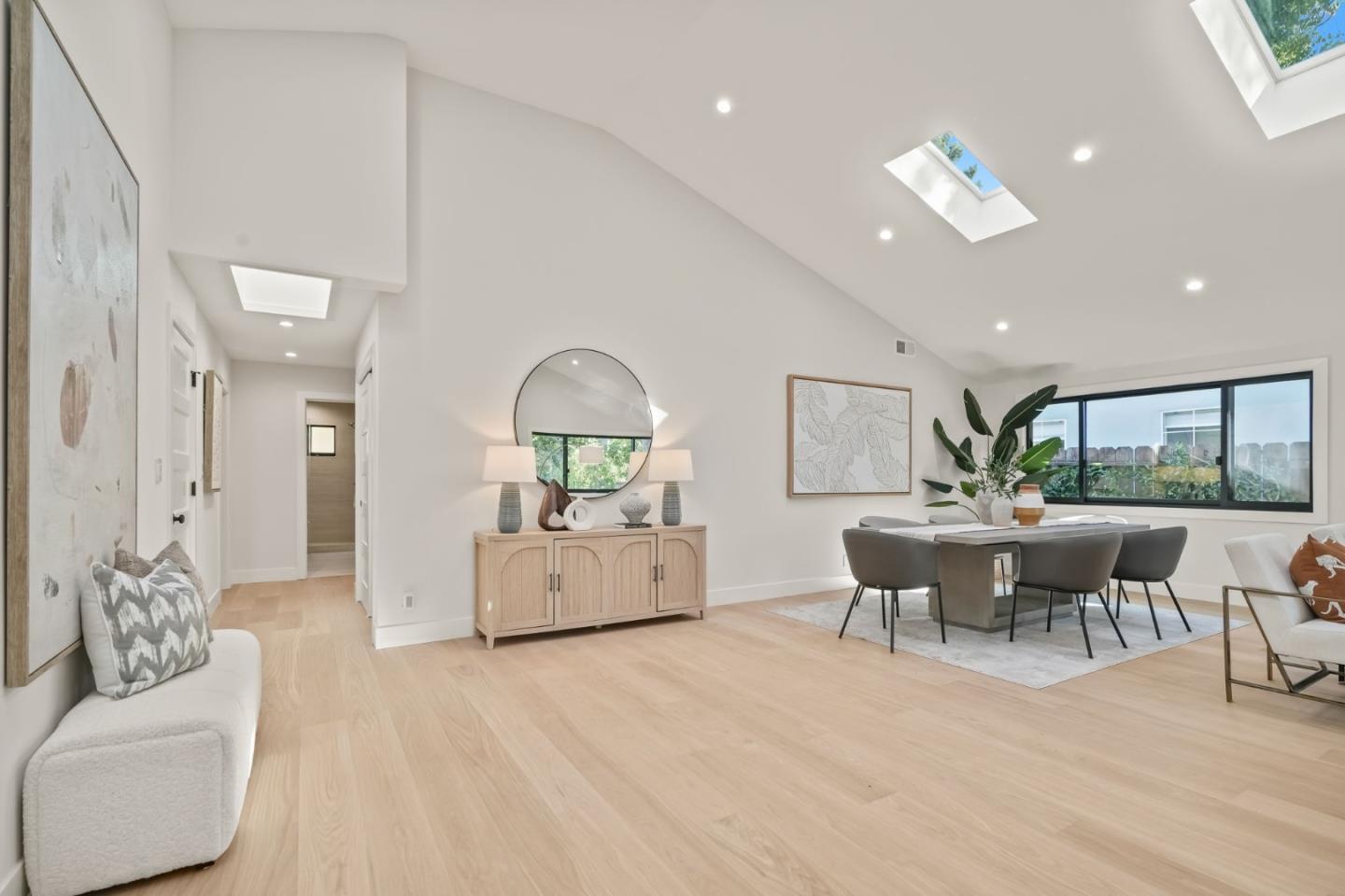 Stunningly remodeled West Menlo Park home has been thoughtfully rebuilt with premium finishes and clean, contemporary design. This single-level home is perfect for indoor-outdoor living. Expansive living/dining room showcases vaulted ceilings, skylights, and abundant natural light. Three bedrooms including the private. primary retreat with sliding doors to the backyard features an en-suite spa-like bathroom with dual sinks, oversized shower, and a walk-in closet. Two additional spacious bedrooms share a hall bath with dual sinks and designer finishes. The chef's kitchen boasts Sub-Zero/Wolf stainless steel appliances, quartz countertops, and white cabinetry, opening to a large family room with fireplace and seamless access to the private yard perfect for entertaining family and friends. Recent top-to-bottom renovation includes hardwood floors throughout, new plumbing, electrical, roof and HVAC with air conditioning. Two-car garage, prime walkable location near shops, restaurants on the Alameda, and top-rated Las Lomitas schools blending style, space, and location to perfection.