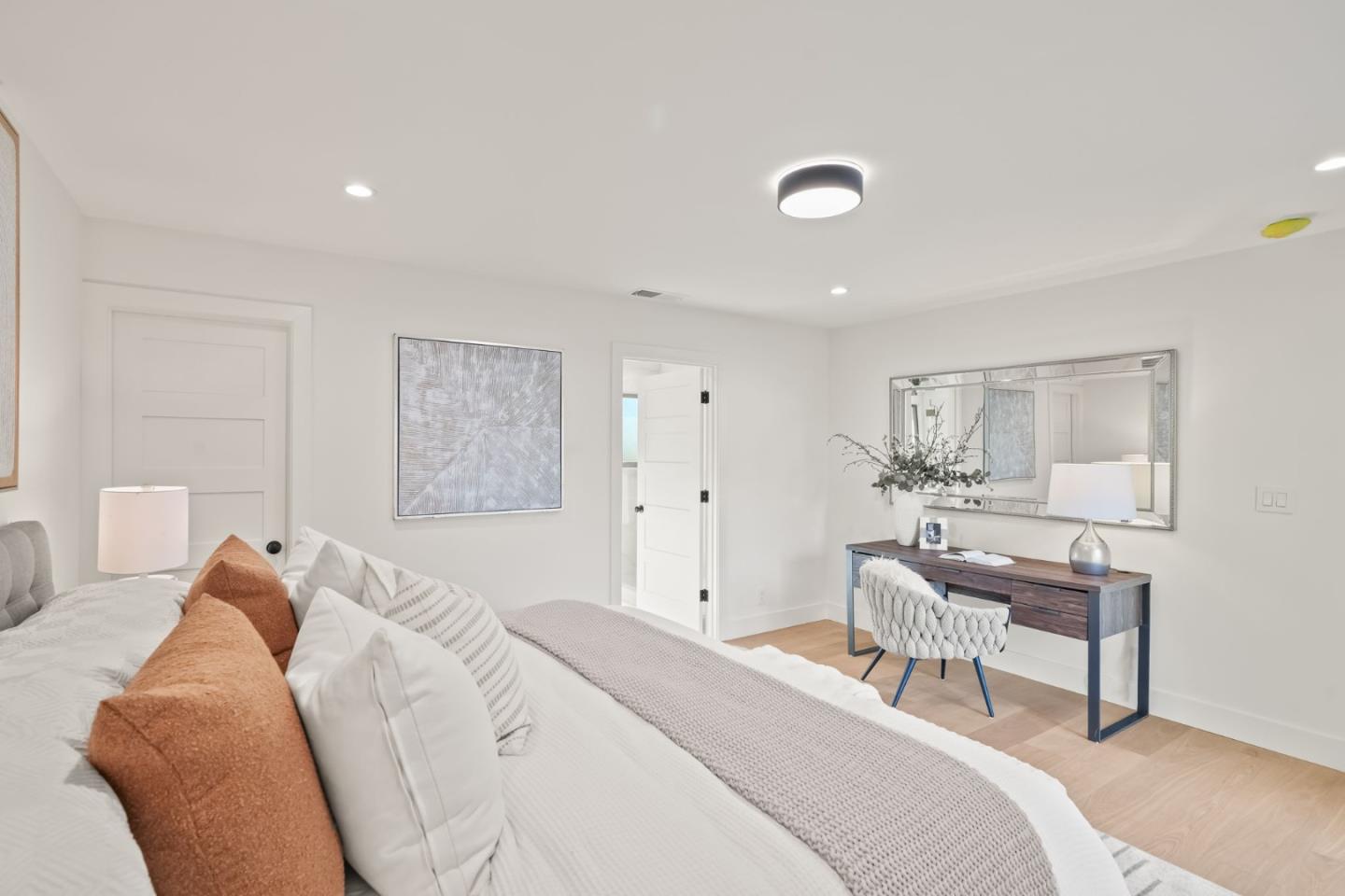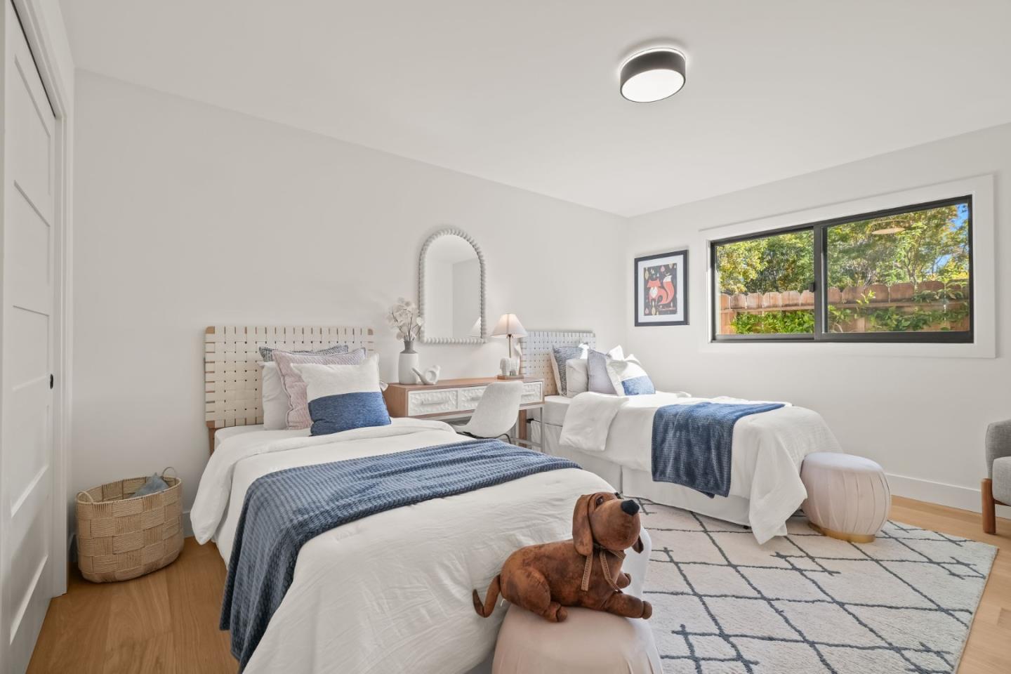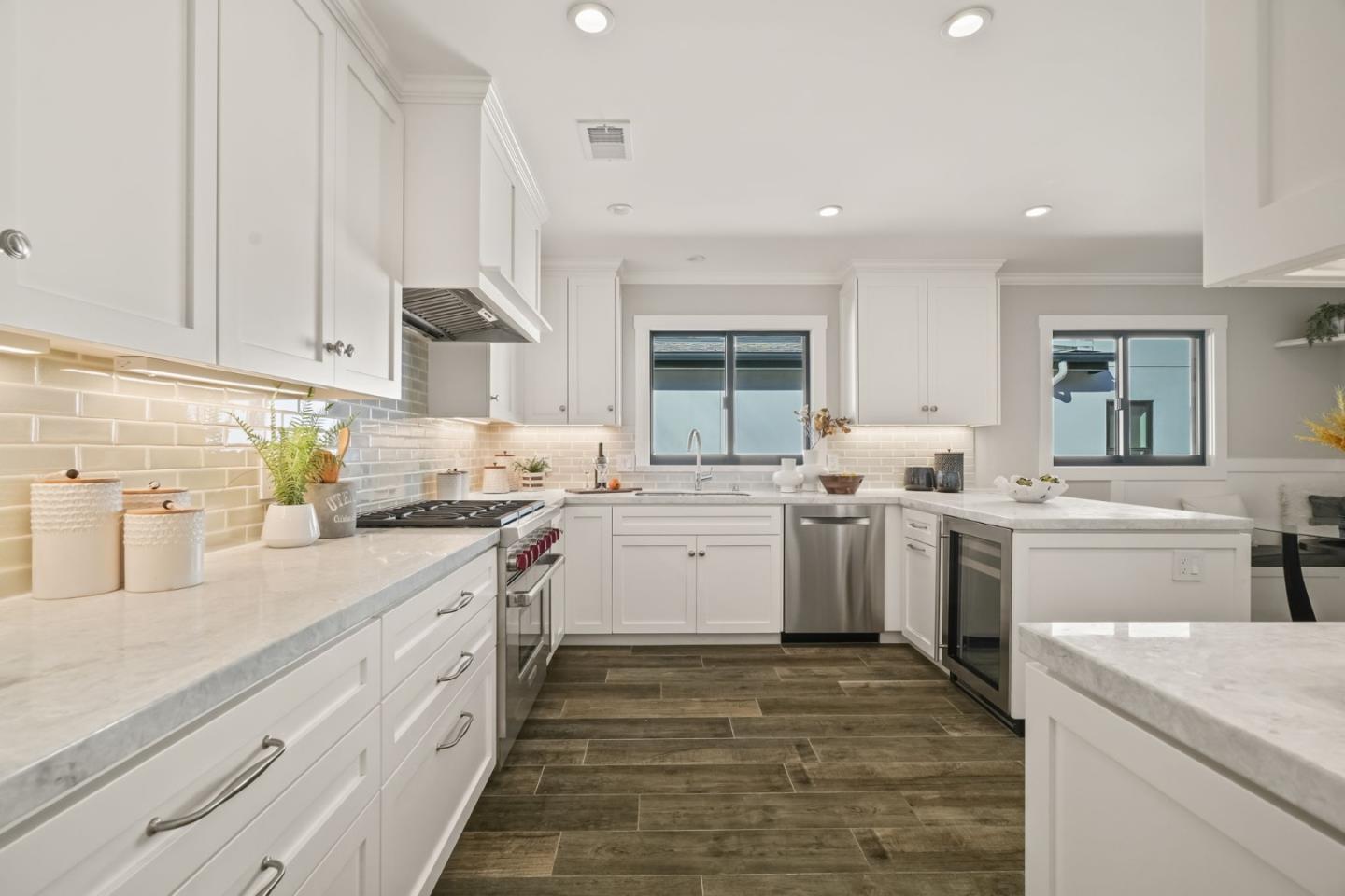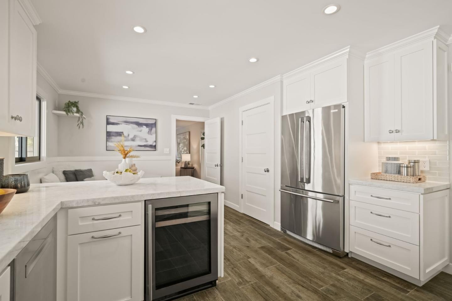 Stunningly remodeled West Menlo Park home has been thoughtfully rebuilt with premium finishes and clean, contemporary design. This single-level home is perfect for indoor-outdoor living. Expansive living/dining room showcases vaulted ceilings, skylights, and abundant natural light. Three bedrooms including the private. primary retreat with sliding doors to the backyard features an en-suite spa-like bathroom with dual sinks, oversized shower, and a walk-in closet. Two additional spacious bedrooms share a hall bath with dual sinks and designer finishes. The chef's kitchen boasts Sub-Zero/Wolf stainless steel appliances, quartz countertops, and white cabinetry, opening to a large family room with fireplace and seamless access to the private yard perfect for entertaining family and friends. Recent top-to-bottom renovation includes hardwood floors throughout, new plumbing, electrical, roof and HVAC with air conditioning. Two-car garage, prime walkable location near shops, restaurants on the Alameda, and top-rated Las Lomitas schools blending style, space, and location to perfection.