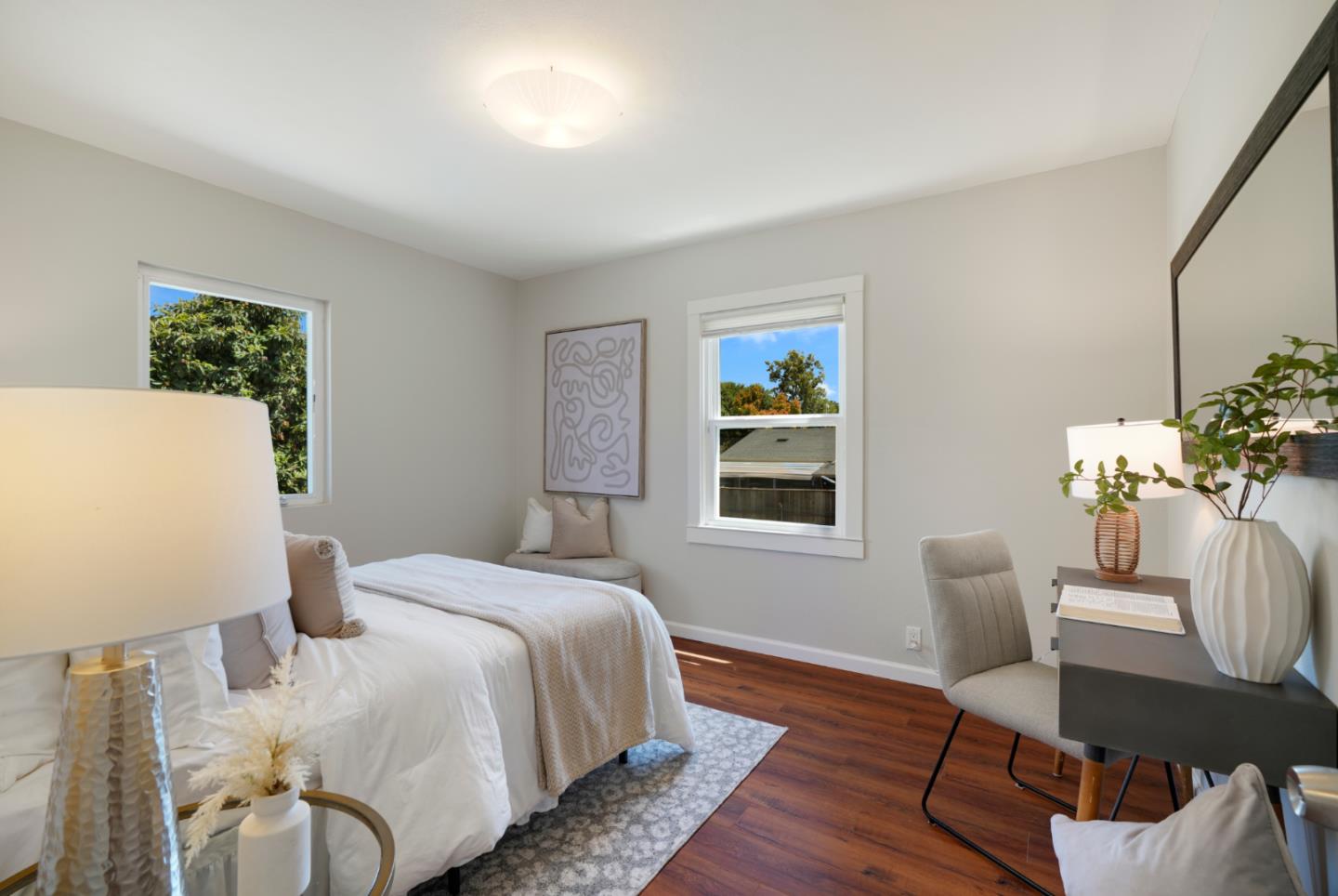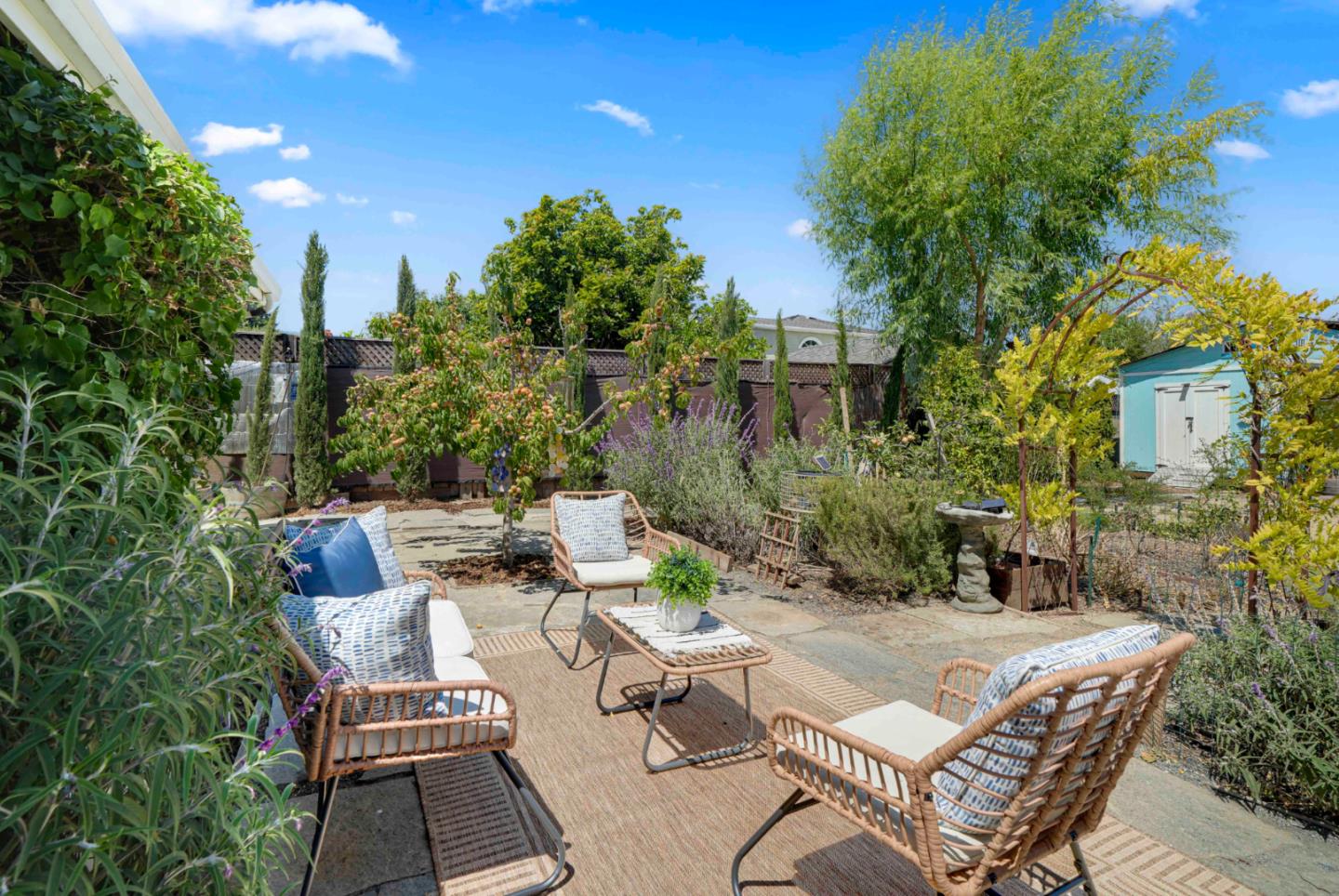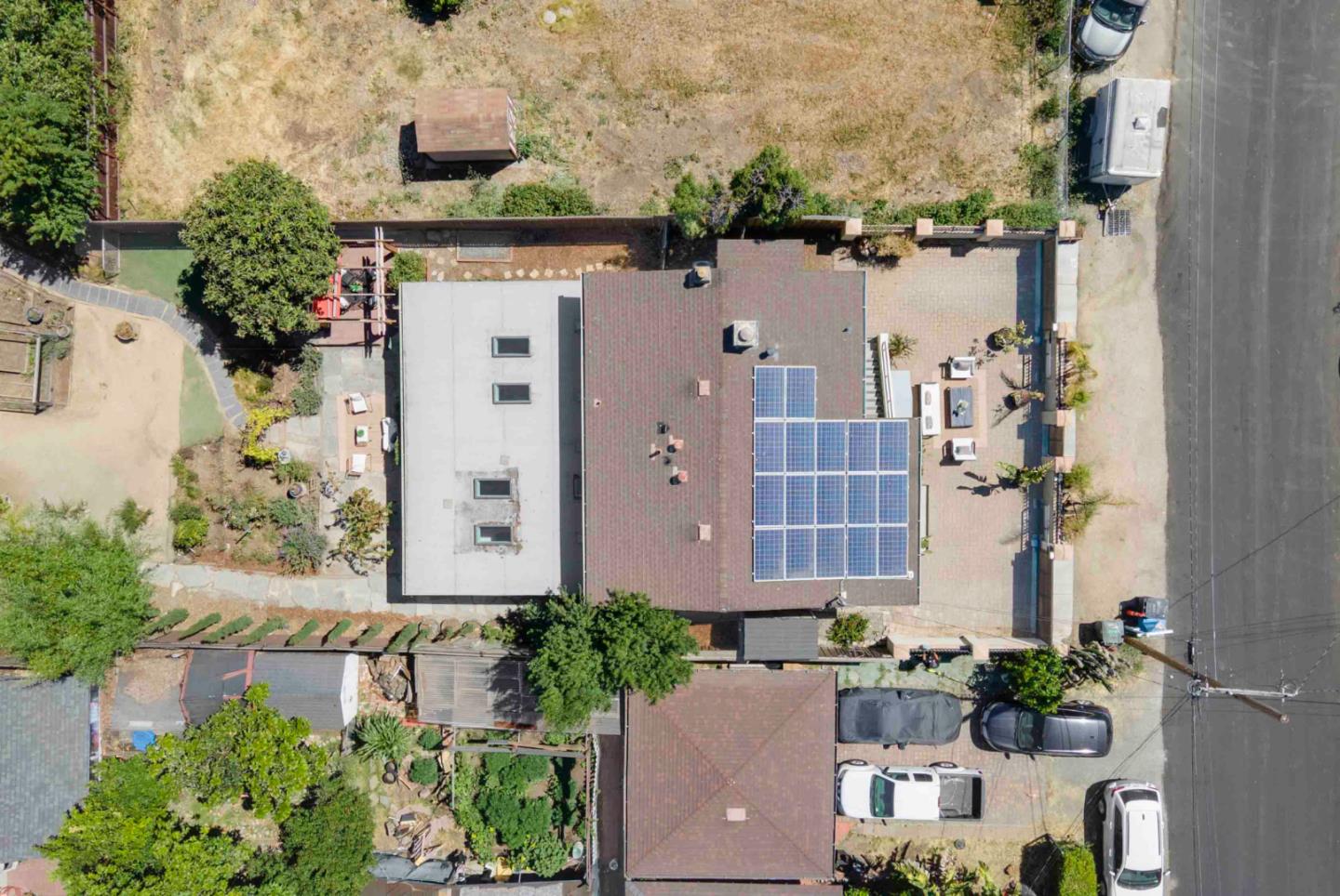 Set on an expansive lot filled with gardens, mature fruit trees, and colorful plantings, this beautifully expanded and remodeled home offers a rare combination of indoor comfort and outdoor serenity. The main home features a chef's kitchen with quartz countertops, stainless steel appliances and custom cabinetry. Three updated bathrooms, along with recent upgrades including solar panels, central A/C, new plumbing, electrical, and water heater. The spacious layout includes a downstairs primary retreat with a large walk-in closet and a spa-inspired bathroom. Another bedroom/home office is on the main floor. Two additional upstairs bedrooms and a full bathroom offer private exterior acces perfect for guests, extended family, or flexible living. Outside, a detached bonus studio provides the ideal space for a home office, yoga room, or creative retreat. A separate shed offers extra storage, and the oversized lot leaves plenty of room for entertaining or future expansion.