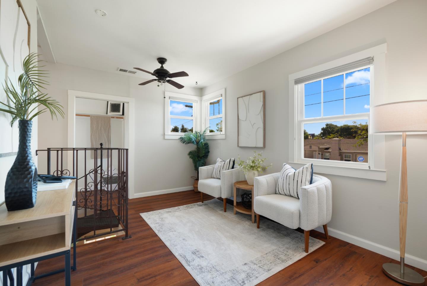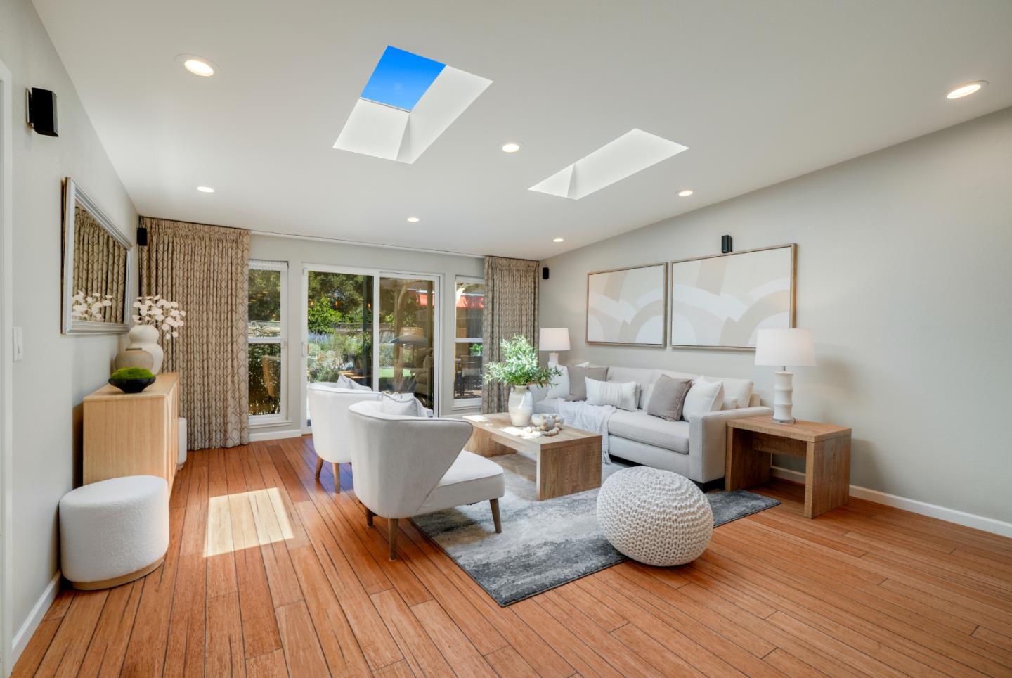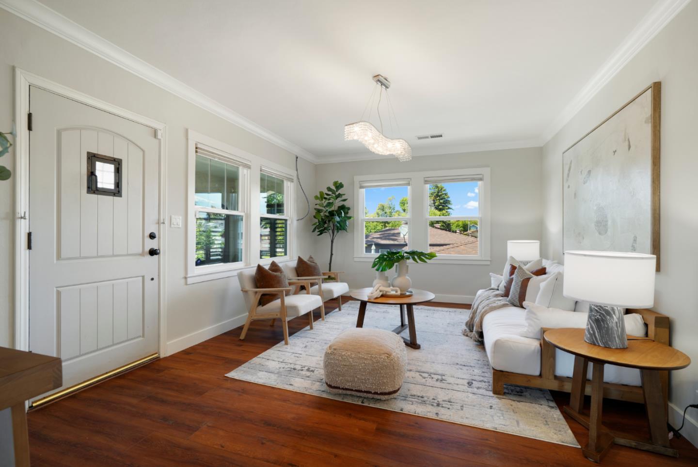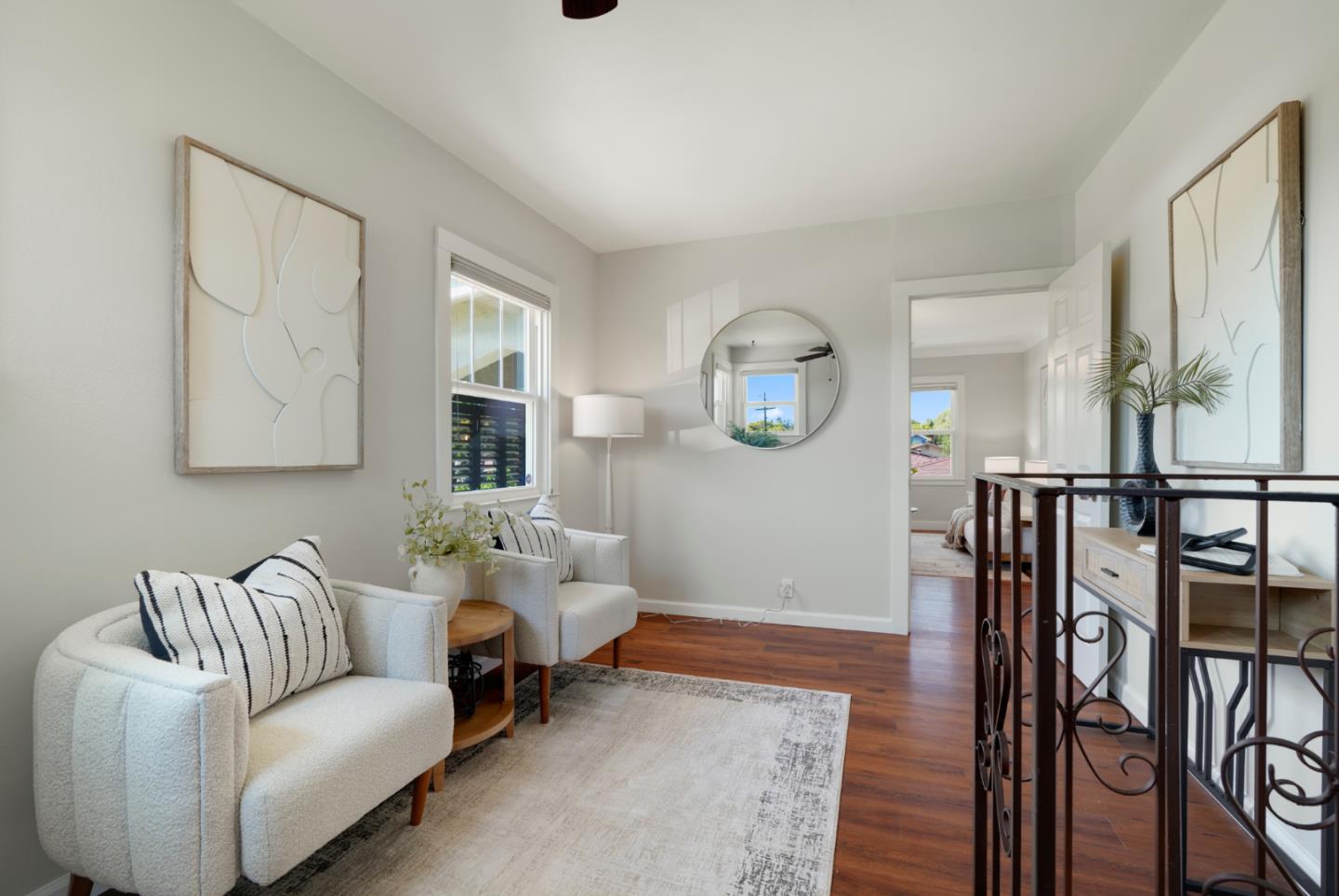 Set on an expansive lot filled with gardens, mature fruit trees, and colorful plantings, this beautifully expanded and remodeled home offers a rare combination of indoor comfort and outdoor serenity. The main home features a chef's kitchen with quartz countertops, stainless steel appliances and custom cabinetry. Three updated bathrooms, along with recent upgrades including solar panels, central A/C, new plumbing, electrical, and water heater. The spacious layout includes a downstairs primary retreat with a large walk-in closet and a spa-inspired bathroom. Another bedroom/home office is on the main floor. Two additional upstairs bedrooms and a full bathroom offer private exterior acces perfect for guests, extended family, or flexible living. Outside, a detached bonus studio provides the ideal space for a home office, yoga room, or creative retreat. A separate shed offers extra storage, and the oversized lot leaves plenty of room for entertaining or future expansion.