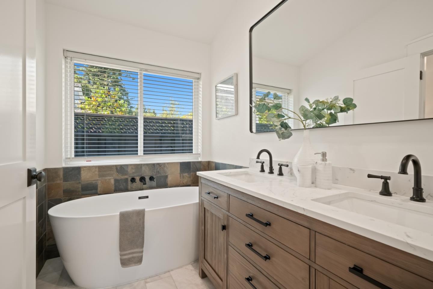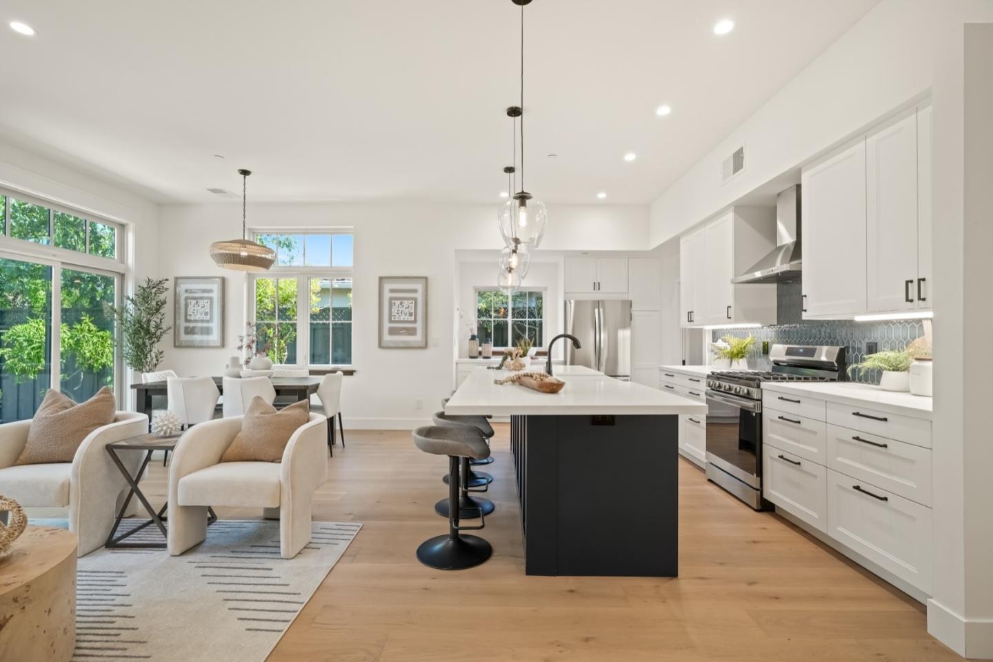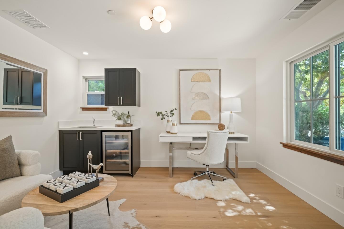 Completely Rebuilt Modern Retreat in Sought-After Flood Park Neighborhood. Experience California living in this rebuilt, modern retreat in one of Menlo Parks most desirable neighborhoods. Redesigned and fully reconstructed in 2024, this home is essentially new construction permitted and rebuilt with premium finishes, high-performance systems, and a contemporary aesthetic. The home features 10-foot ceilings, wide-plank oak floors, and abundant natural light. The heart of the home is a spacious great room with a chefs kitchen, large island, quartz countertops, and sleek wood cabinetry. The primary suite offers a walk-in closet and spa-like bathroom with a freestanding tub. With four bedrooms plus a versatile bonus room, theres plenty of space to work, host, or unwind. The oversized laundry and mudroom adds exceptional function with extensive cabinetry and storage. Step outside to a beautifully landscaped backyard with a generous patio ideal for alfresco dining, play, or relaxation. Every system is brand new including roof, electrical, plumbing, tankless water heater, and HVAC. This is a rare opportunity to own a fully reimagined home in a tree-lined neighborhood with top-rated Menlo Park schools just blocks away from Flood Park with its picnic areas, sports fields and trails.