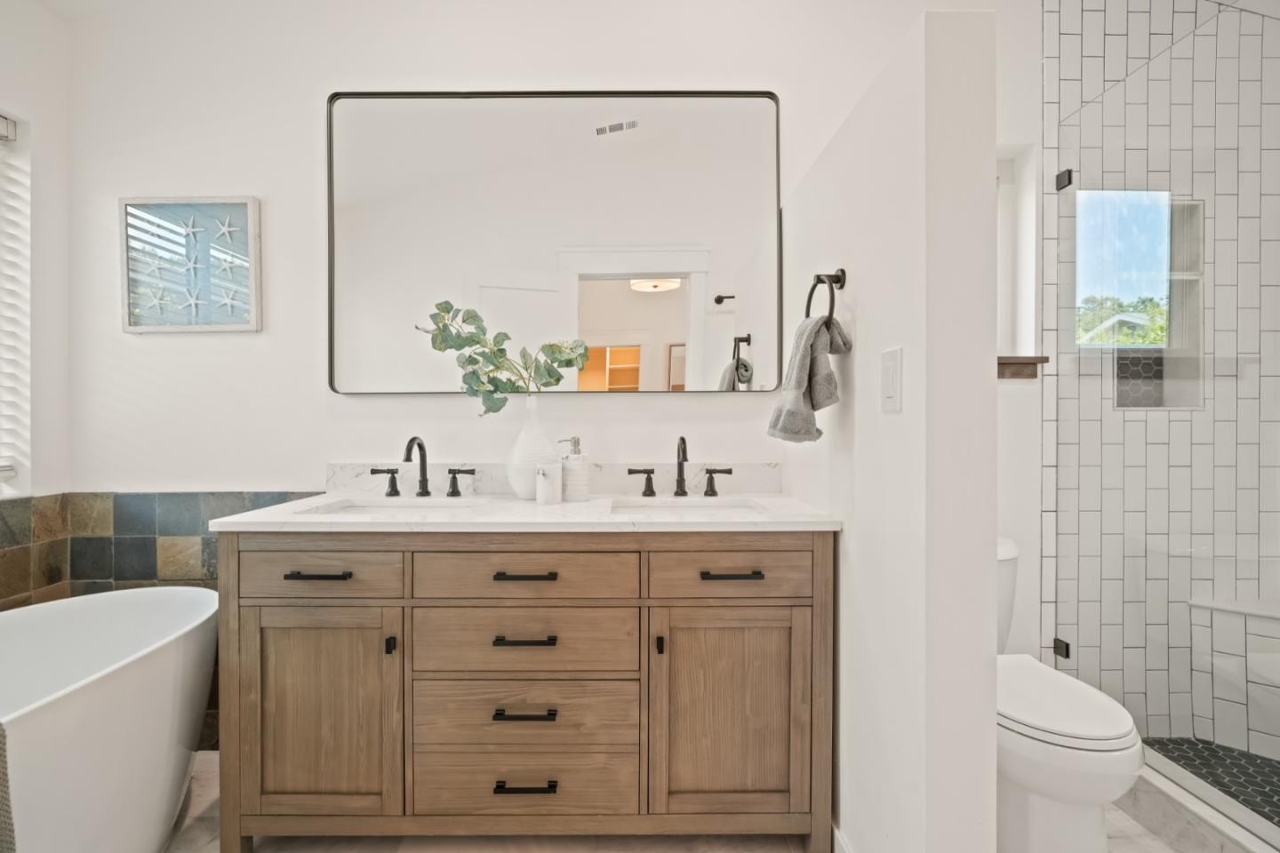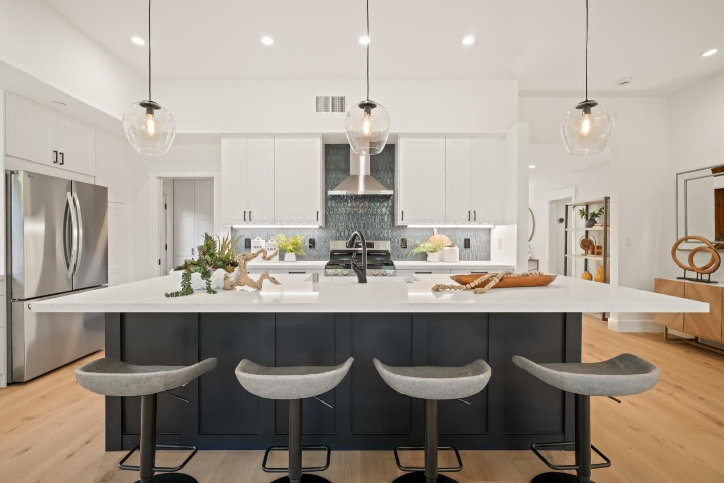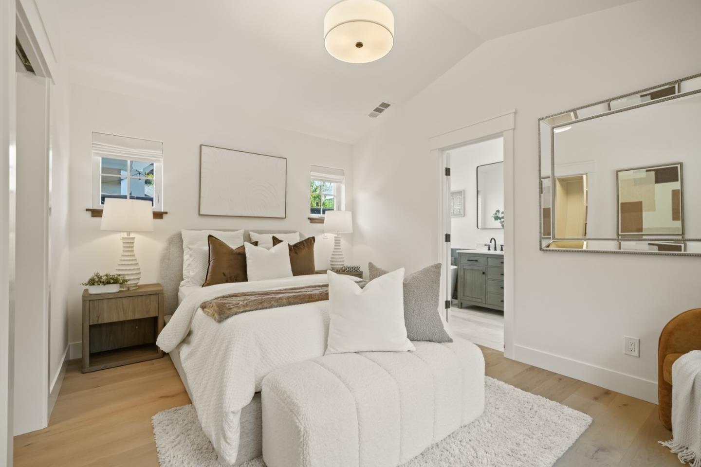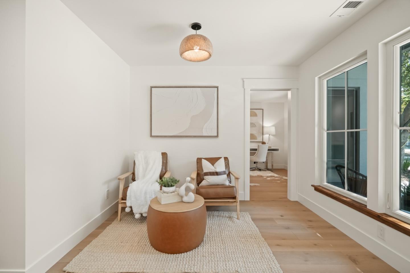 Completely Rebuilt Modern Retreat in Sought-After Flood Park Neighborhood. Experience California living in this rebuilt, modern retreat in one of Menlo Parks most desirable neighborhoods. Redesigned and fully reconstructed in 2024, this home is essentially new construction permitted and rebuilt with premium finishes, high-performance systems, and a contemporary aesthetic. The home features 10-foot ceilings, wide-plank oak floors, and abundant natural light. The heart of the home is a spacious great room with a chefs kitchen, large island, quartz countertops, and sleek wood cabinetry. The primary suite offers a walk-in closet and spa-like bathroom with a freestanding tub. With four bedrooms plus a versatile bonus room, theres plenty of space to work, host, or unwind. The oversized laundry and mudroom adds exceptional function with extensive cabinetry and storage. Step outside to a beautifully landscaped backyard with a generous patio ideal for alfresco dining, play, or relaxation. Every system is brand new including roof, electrical, plumbing, tankless water heater, and HVAC. This is a rare opportunity to own a fully reimagined home in a tree-lined neighborhood with top-rated Menlo Park schools just blocks away from Flood Park with its picnic areas, sports fields and trails.